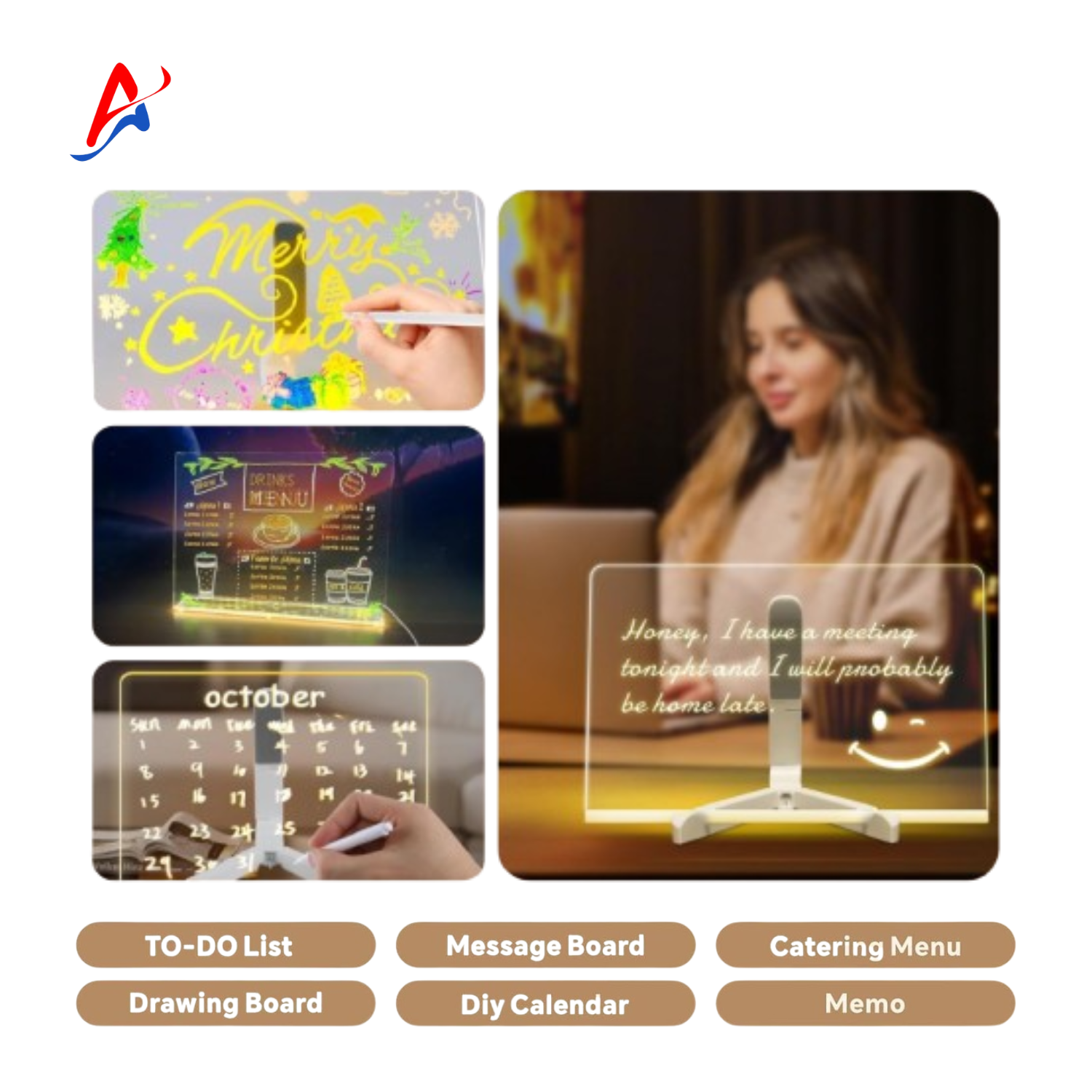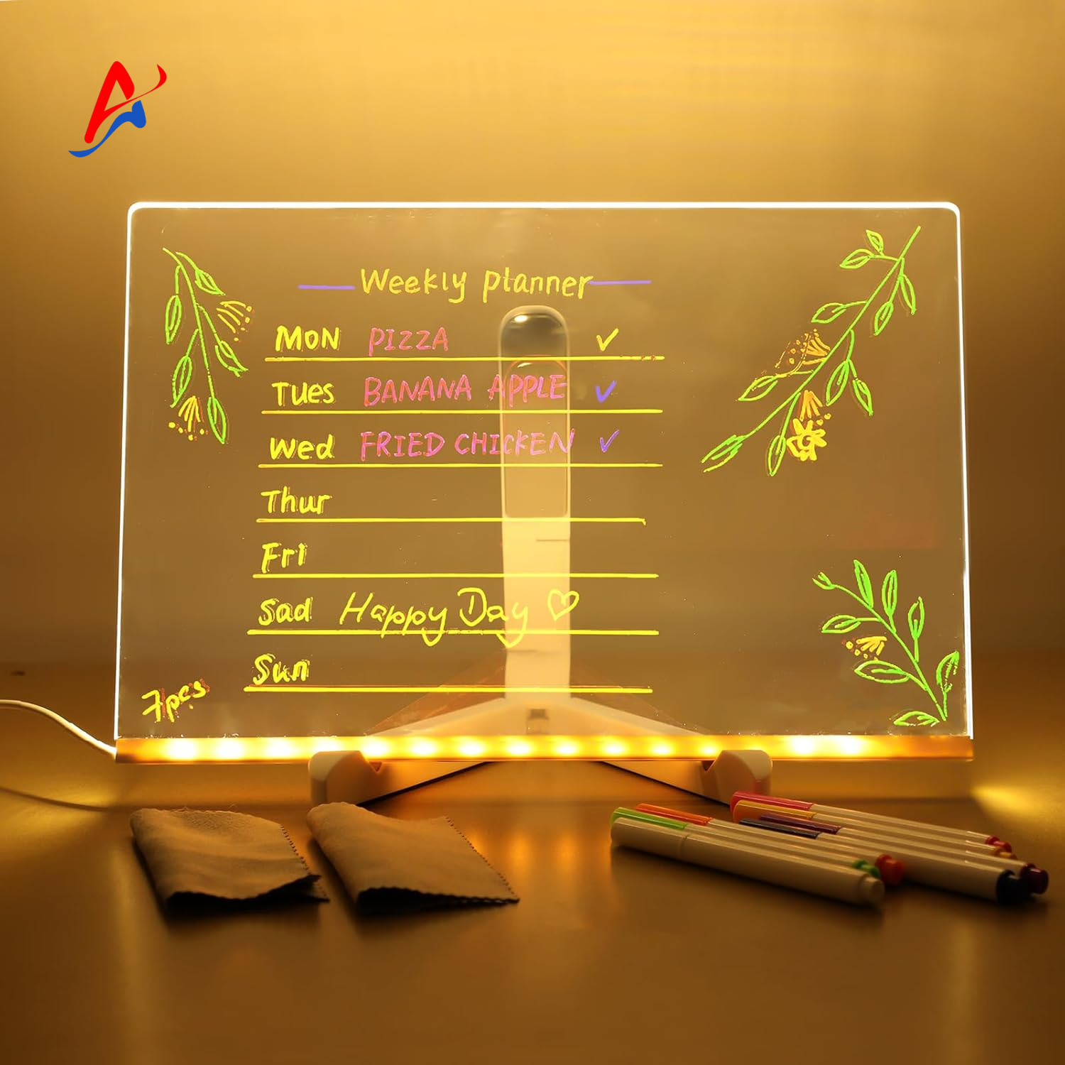 This all-in-one LED acrylic message board is the perfect blend of creativity and practicality. Whether you're announcing big news, sharing encouragement, or organizing your day, this board lets your messages glow with style. Designed with a futuristic soft-light base and 16 built-in LEDs, it creates a cozy ambiance—ideal for desks, bedrooms, cafes, or romantic dinners.